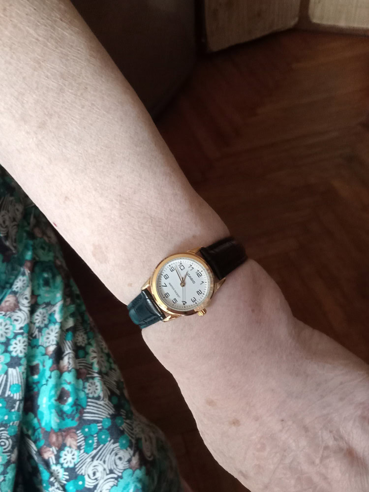 Классические , небольшие часы для обладательниц тонких запястий. Очень красиво и органично смотрятся на руке. Механизм работает. Без дефектов. Спасибо продавцу❤️