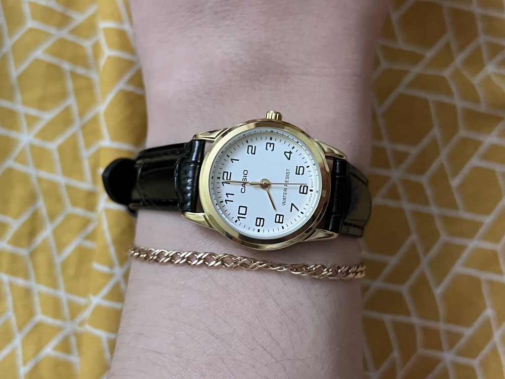 На запястье часики смотрятся очень элегантно, экстетично и из-за того, что циферблат не большой, рука кажется тоньше.