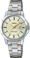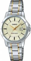 Женские наручные часы в стальном круглом корпусе с окошком даты , на браслете с частичной позолотой.