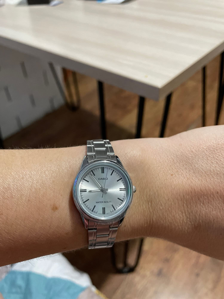 28.2x34x7.5 мм • Светонакопительный состав на стрелках. • Браслет из нержавеющей стали. • Водозащита до 3 АТМ.