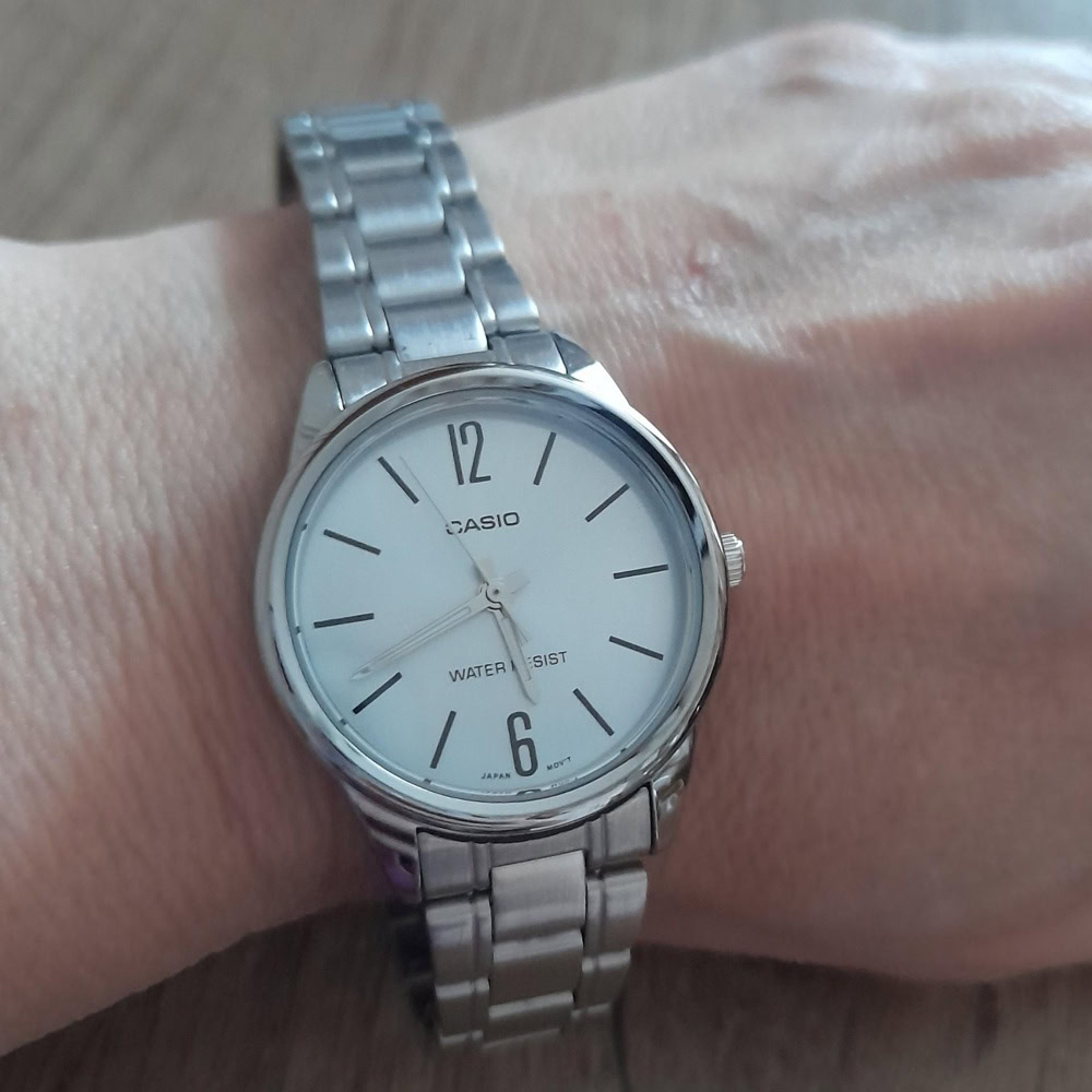 Оформление часов выдержано в универсальном стиле с элементами традиционного дизайна. Есть парная модель MTP-V005 из мужской коллекции. Технические характеристики: