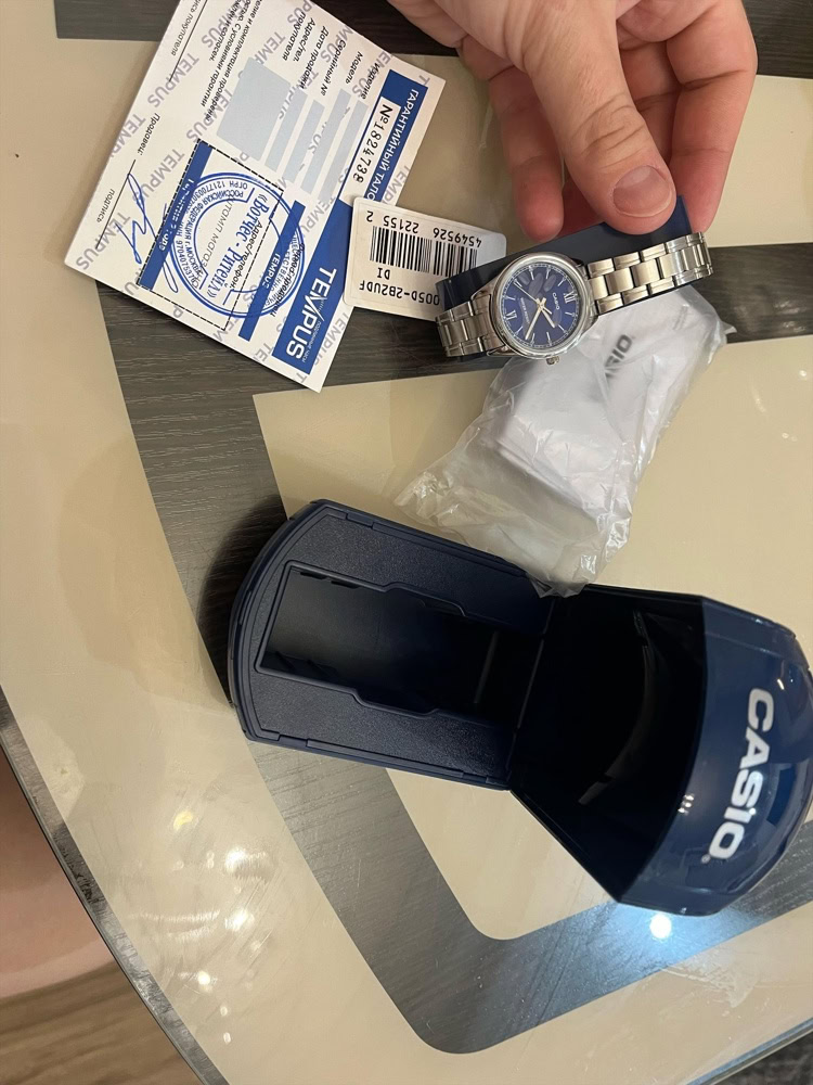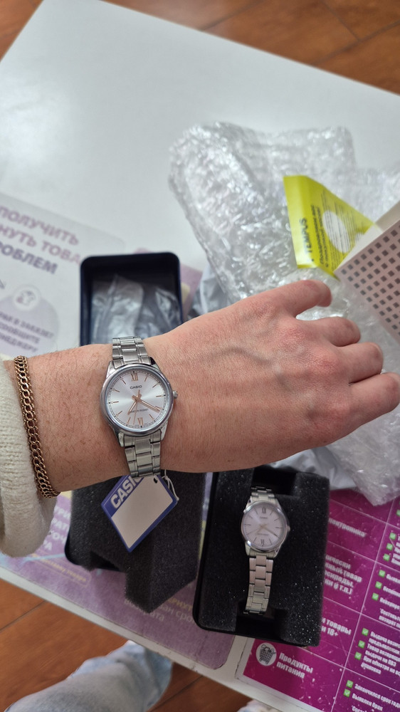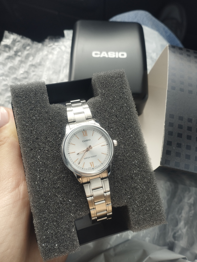 Отличные часы. Уже вторые от этого продавца. Пришли быстро, хорошо упакованы. Сами часы в пластиковой коробке, в ней же - инструкция и гарантийный талон (он без печати и всяких отметок, никто их не ставит). Циферблат под защитной плёнкой. Посмотрев один раз в Ютубе ролик об уменьшении браслета, делаю это теперь сама.