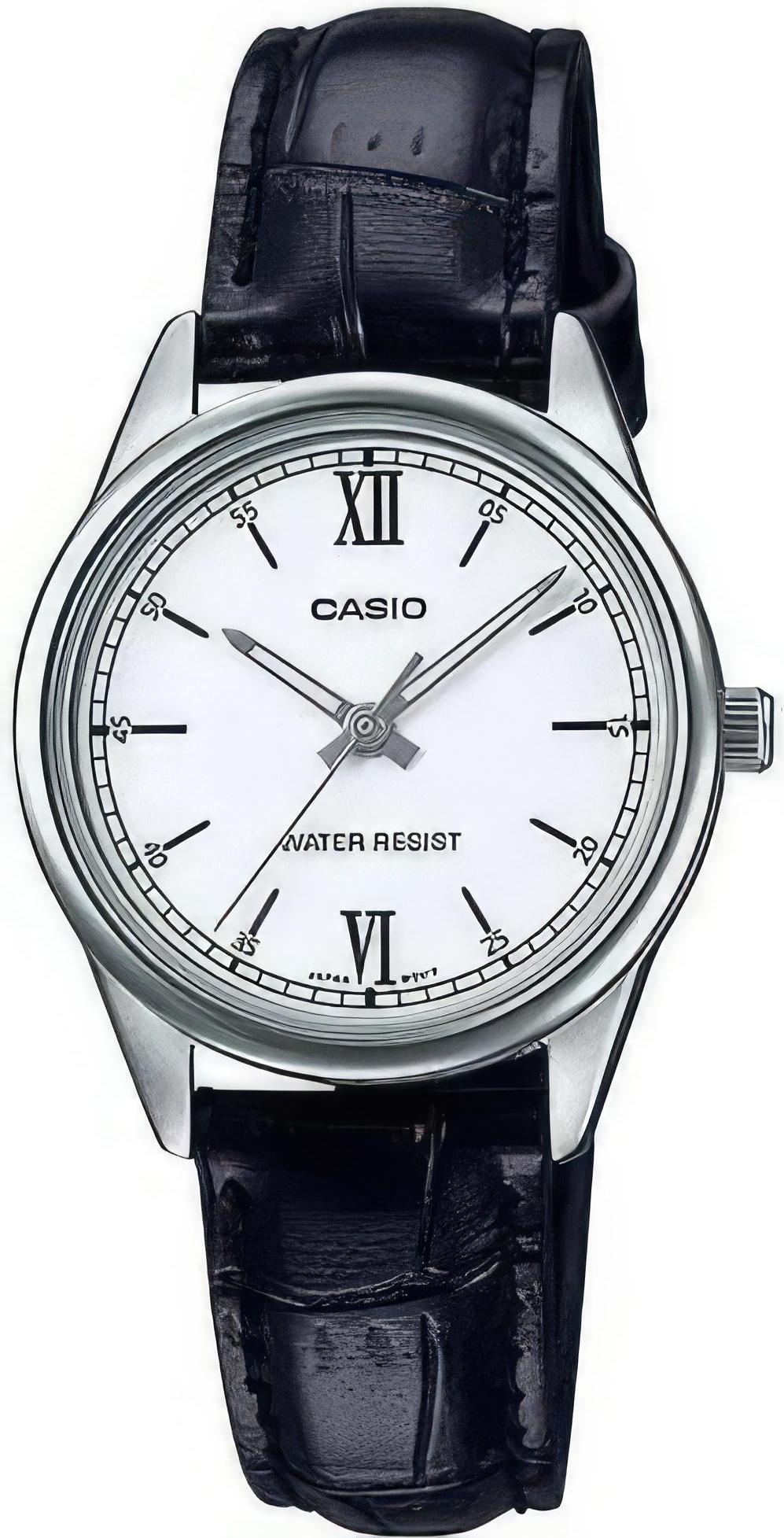 Женские наручные часы Casio Collection LTP-V005L-7B2. Точный кварцевый механизм с аналоговой индикацией. Корпус изготовлен из высококачественной нержавеющей стали 316L с высокими антикоррозийными свойствами. На стрелки и отметки нанесен светонакопительный состав, благодаря этому считывать информацию с циферблата возможно и в темноте. Ремешок изготовлен из кожи. Прочное, устойчивое к царапинам минеральное стекло защищает часы от повреждений. Часы являются водонепроницаемыми до 3 Бар. Цвет корпуса: Серебристый. Цвет циферблата: Белый. Ширина (с заводной головкой): 34мм. Толщина: 7мм. Гарантия: 2 года.