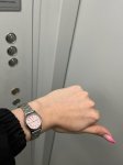 Миниатюрные женские часы с кварцевым механизмом помимо часов, минут и секунд, отображающим дату и день недели в отдельном окошке.