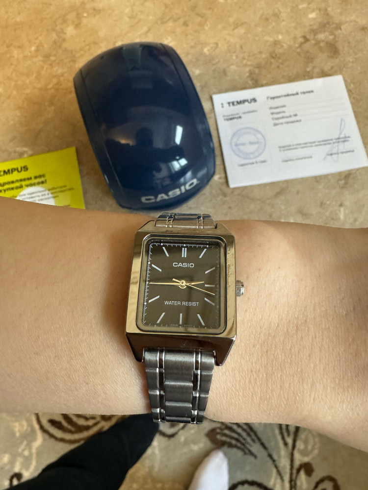 Часы очень понравились,как раз на тонкой руке смотрятся самое то,в комплекте защиный чехол и гарантийный талон