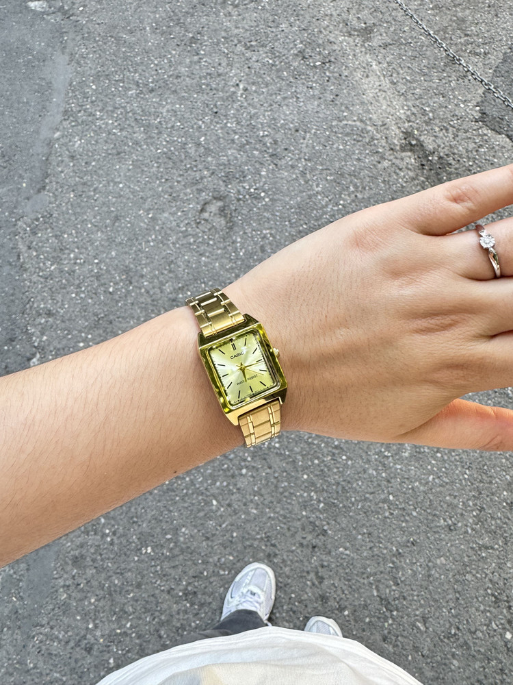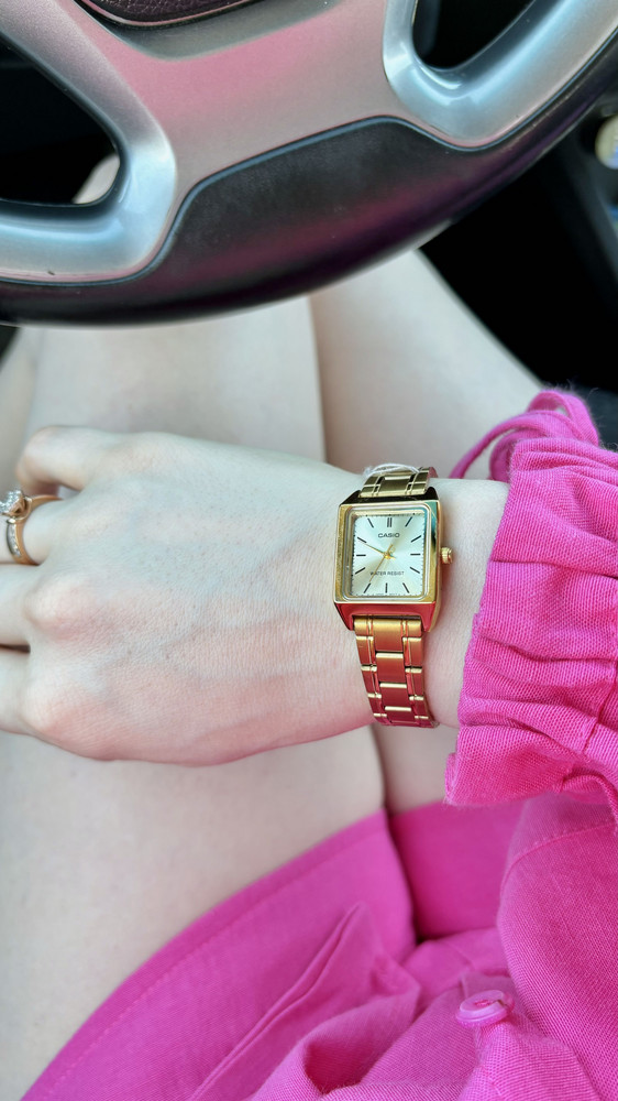 Женские часы в классическом стиле. Доступная цена. Прямоугольный металлический корпус и стальной браслет с IP-покрытием цвета золота. Минеральное стекло. Японский кварцевый механизм.