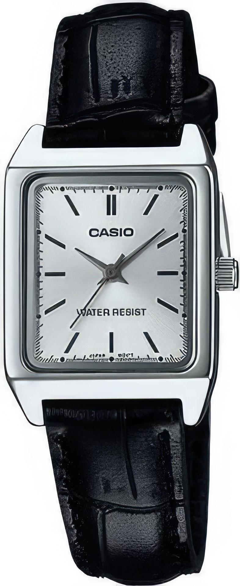 Женские наручные часы Casio Collection LTP-V007L-7E1. Точный кварцевый механизм с аналоговой индикацией. Корпус изготовлен из высококачественной часовой латуни с высокими антикоррозийными свойствами. Ремешок изготовлен из кожи. Прочное, устойчивое к царапинам минеральное стекло защищает часы от повреждений.Часы являются водонепроницаемыми до 3 Бар. Цвет корпуса: Серебристый. Цвет циферблата: Серебристый. Ширина (с заводной головкой): 31мм. Толщина: 8мм. Гарантия: 2 года.