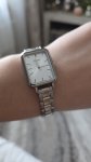 Аккуратно, нежно смотрятся на руке, циферблат серебро, не матовый, на свету переливается. Сами часы не тяжелые, но вес имеют) Убрала четыре звенья самостоятельно по видеоуроку. Купила по хорошей скидке, довольна. Спасибо! Надеюсь, будут долго служить