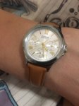 Часы очень понравились. У меня очень тонкое запястье , боялась что будут велики. Очень здорово, что на часах есть 24 формат времени, а так же день недели и дата. Смотрятся на руке очень хорошо, на солнце блестят.
