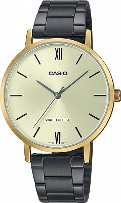 <b>Женские наручные часы Casio Collection LTP-VT01GB-9B.</b> Точный кварцевый механизм с аналоговой индикацией. Корпус изготовлен из высококачественной нержавеющей стали 316L с высокими антикоррозийными свойствами. Аккумулятор обеспечивает часы достаточным питанием приблизительно на 3 года. Браслет из нержавеющей стали. Прочное, устойчивое к царапинам минеральное стекло защищает часы от повреждений. Часы являются водонепроницаемыми до 3 Бар. Цвет корпуса: Желтое золото. Цвет циферблата: Золотистый. Ширина (с заводной головкой): 34мм. Толщина: 8мм. Гарантия: 2 года.