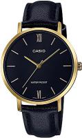 Женские наручные часы Casio Collection LTP-VT01GL-1B. Точный кварцевый механизм с аналоговой индикацией. Корпус изготовлен из высококачественной нержавеющей стали 316L с высокими антикоррозийными свойствами. Ремешок изготовлен из кожи. Прочное, устойчивое к царапинам минеральное стекло защищает часы от повреждений. Часы являются водонепроницаемыми до 3 Бар. Цвет корпуса: Желтое золото. Цвет циферблата: Черный. Ширина (с заводной головкой): 34мм. Толщина: 8мм. Гарантия: 2 года.