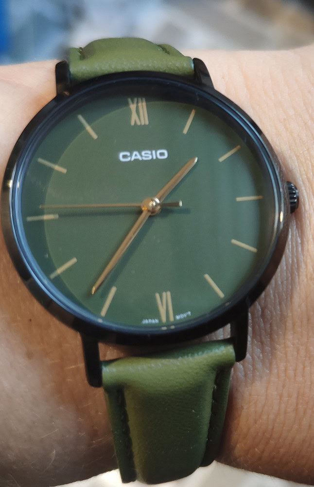 Женские наручные часы Casio Collection LTP-VT02BL-3A. Точный кварцевый механизм с аналоговой индикацией. Ремешок изготовлен из кожи. Аккумулятор обеспечивает часы достаточным питанием приблизительно на 3 года. Браслет из нержавеющей стали. Прочное, устойчивое к царапинам минеральное стекло защищает часы от повреждений. Часы являются водонепроницаемыми до 3 Бар. Цвет циферблата: Черный. Цвет корпуса: Зеленый. Толщина: 8 мм. Гарантия: 2 года.