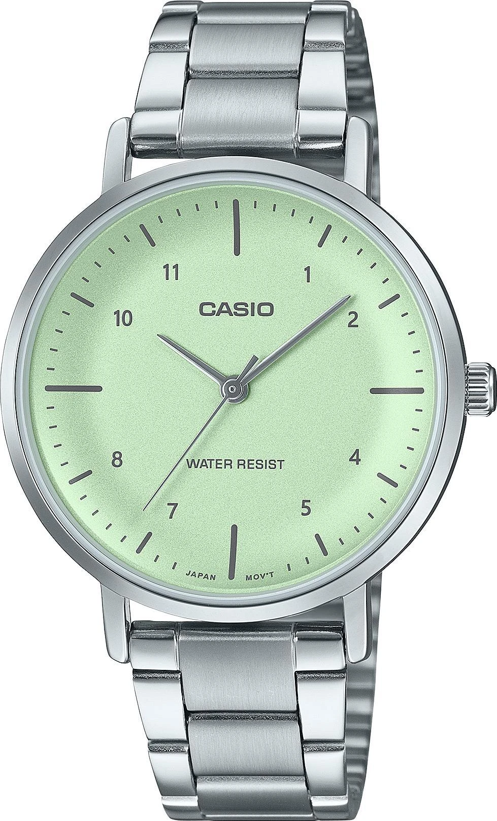 Женские наручные часы Casio Collection LTP-VT03D-3B. Точный кварцевый механизм с аналоговой индикацией. Браслет из нержавеющей стали. Функция перемещения стрелок. Нажатие на кнопку обеспечит перемещение стрелок в такое положение, которое позволит Вам легко считать информацию с маленьких цифровых дисплеев – например, дату или показатели секундомера. Аккумулятор обеспечивает часы достаточным питанием приблизительно на 3 года. Браслет из нержавеющей стали. Прочное, устойчивое к царапинам минеральное стекло защищает часы от повреждений. Часы являются водонепроницаемыми до 3 Бар. Цвет циферблата: Серебристый. Цвет корпуса: Зеленый. Толщина: 7 мм. Гарантия: 2 года.