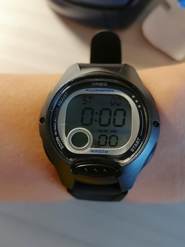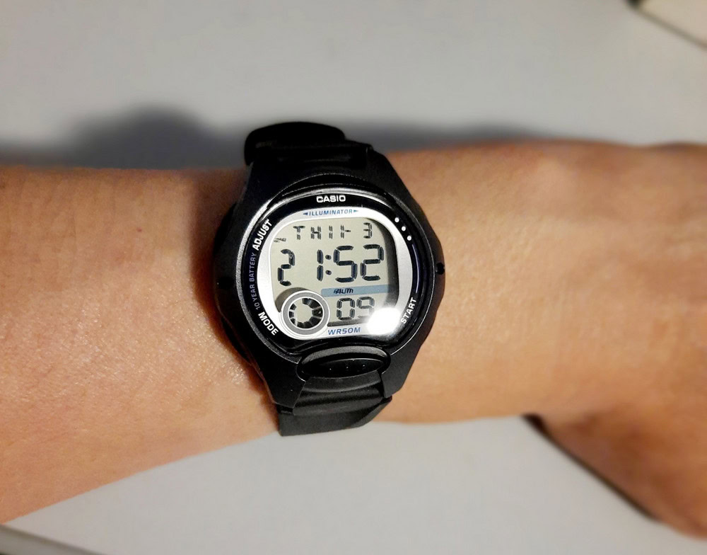 Часики компактные, аккуратные. С кнопочками разобрались быстро и легко. На фотке - на лапке 8-летней девочки. Очень довольны.
