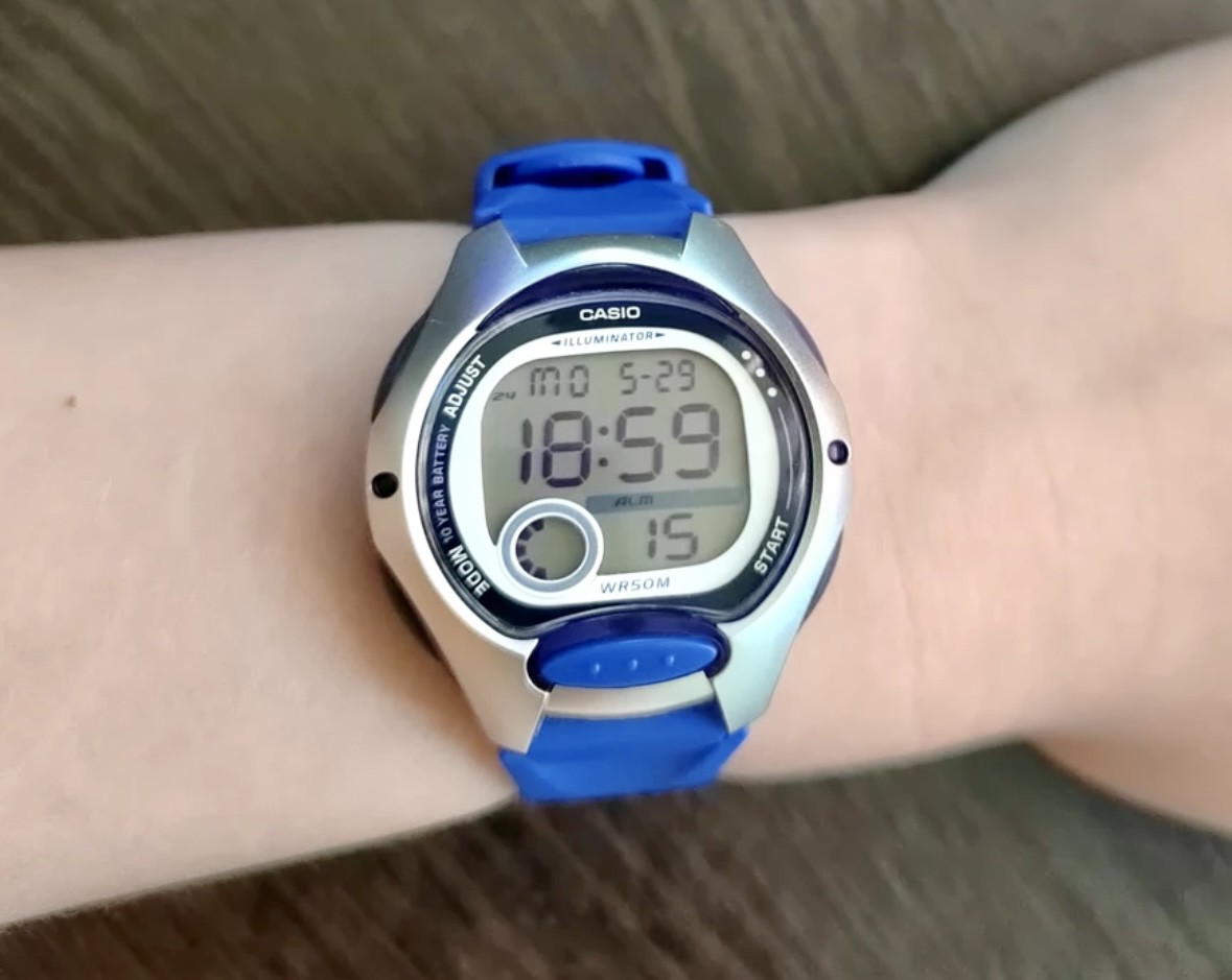 Часы понравились, для ребёнка 7-8 лет, на руке смотрятся не слишком массивно, в отличие от смарт часов. Ремешок удобный. Есть подсветка жёлтым светом. В кружочке отсчитываются секунды.