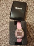 Часы детские, но подойдут и на взрослую узкую руку. Кажется это самые маленькие по диаметру циферблата (внутренний диаметр 2,5 см) цифровые часы Casio. Минимальный охват по ремешку примерно 11,5 см. В реальности часы более нежного розового цвета, чем на фото и кислотно-розовыми не выглядят. Ободок спереди серебристый, а сбоку из прозрачного пластика, хотя на фото этого не видно. Ребенок доволен, а мне не хватает будильника с возможностью выбора дня недели как у рядовых китайских часов, но у Casio по-моему таких будильников не бывает вовсе. Секундомер тоже скорее номинальный, на два измерения (а не на 10, как в "недетских" спортивных Casio). Зачем в детских часах добавлена функция "мирового времени" я искренне не понимаю. Ежечасный сигнал выглядит для ребенка тоже не очень полезным, но пусть будет. Самое главное - это все-таки Casio, с нормальной батарейкой и влагозащенностью. Плавать в них не рекомендуется, но руки мыть точно можно, а когда часы на руке у ребенка, влагозащищенность важна.
