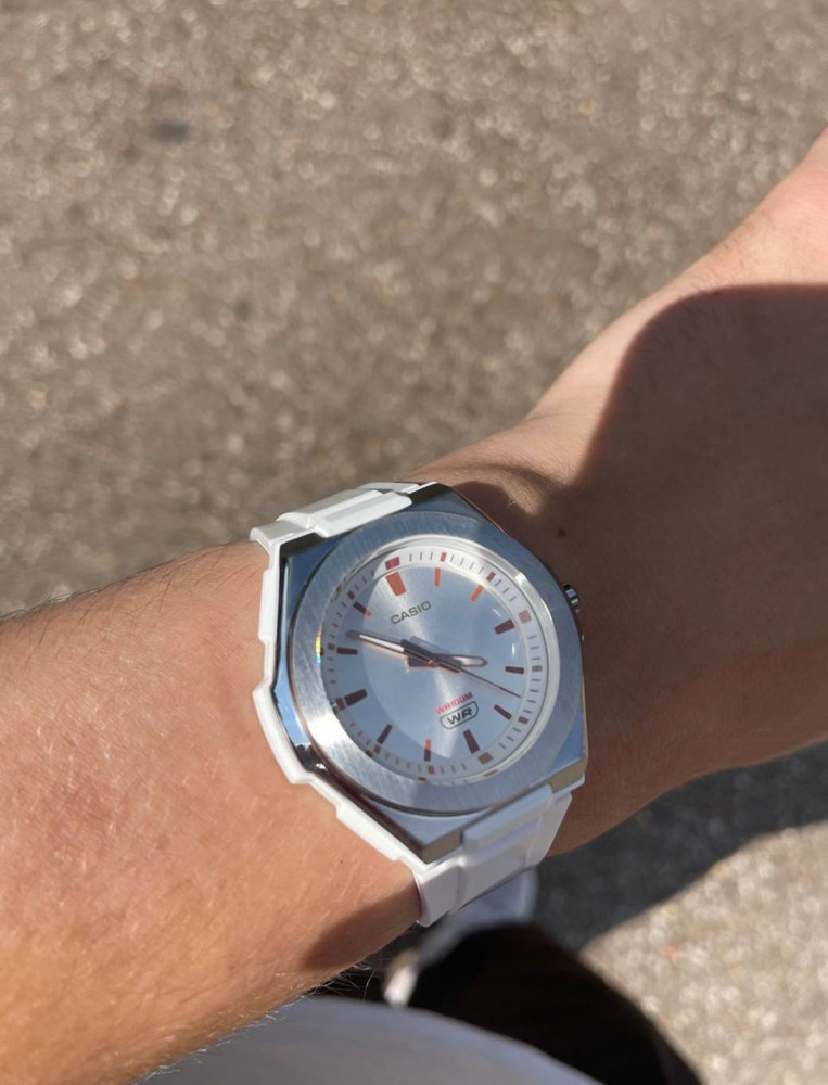 Корпус представляет собой комбинацию из нержавеющей стали и смолы какого тактовая элегантный, прочный, но легкий делают. - Ремешок из полимерного материала.