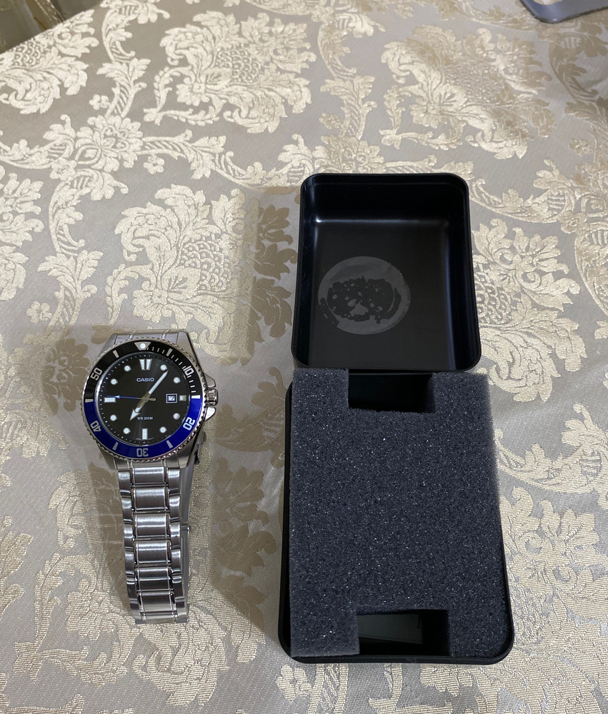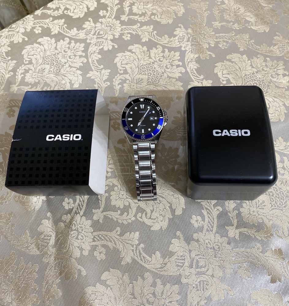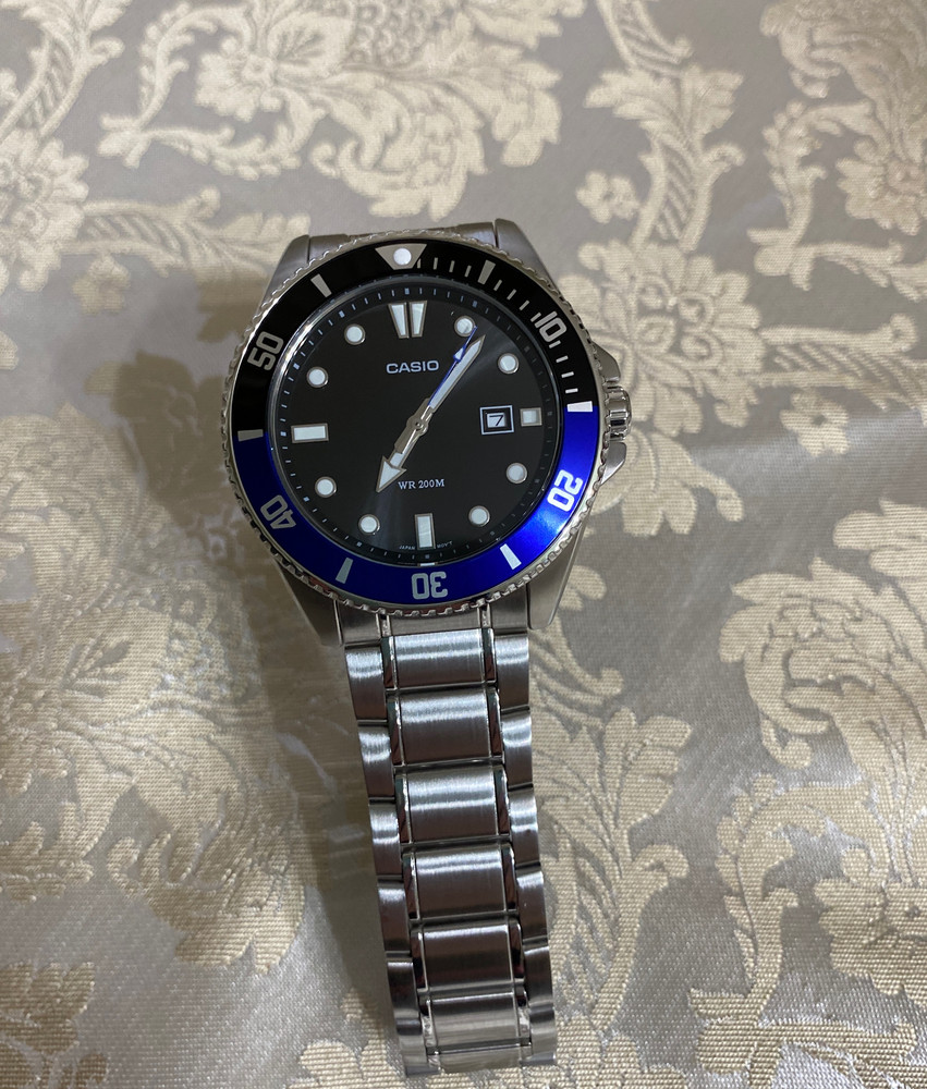 Мужские наручные часы Casio Collection MDV-107D-1A2. Точный кварцевый механизм с аналоговой индикацией. Браслет из нержавеющей стали. Аккумулятор обеспечивает часы достаточным питанием приблизительно на 3 года. Браслет из нержавеющей стали. Прочное, устойчивое к царапинам минеральное стекло защищает часы от повреждений. На циферблате отображается текущее число месяца. Часы являются водонепроницаемыми до 20 Бар. Цвет циферблата: Серебристый. Цвет циферблата: Синий. Цвет циферблата: Черный. Цвет корпуса: Черный. На стрелки и отметки нанесен светонакопительный состав, благодаря этому считывать информацию с циферблата возможно и в темноте. Толщина: 12 мм. Гарантия: 2 года.