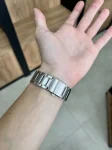 Удобная застежка, расстегиваемая одним касанием. Благодаря своей конструкции она никогда не размыкается полностью, а раскладывается на три части. Это позволяет легко снимать и надевать часы, сводя вероятность их падения или потери при случайном расстегивании к минимуму.