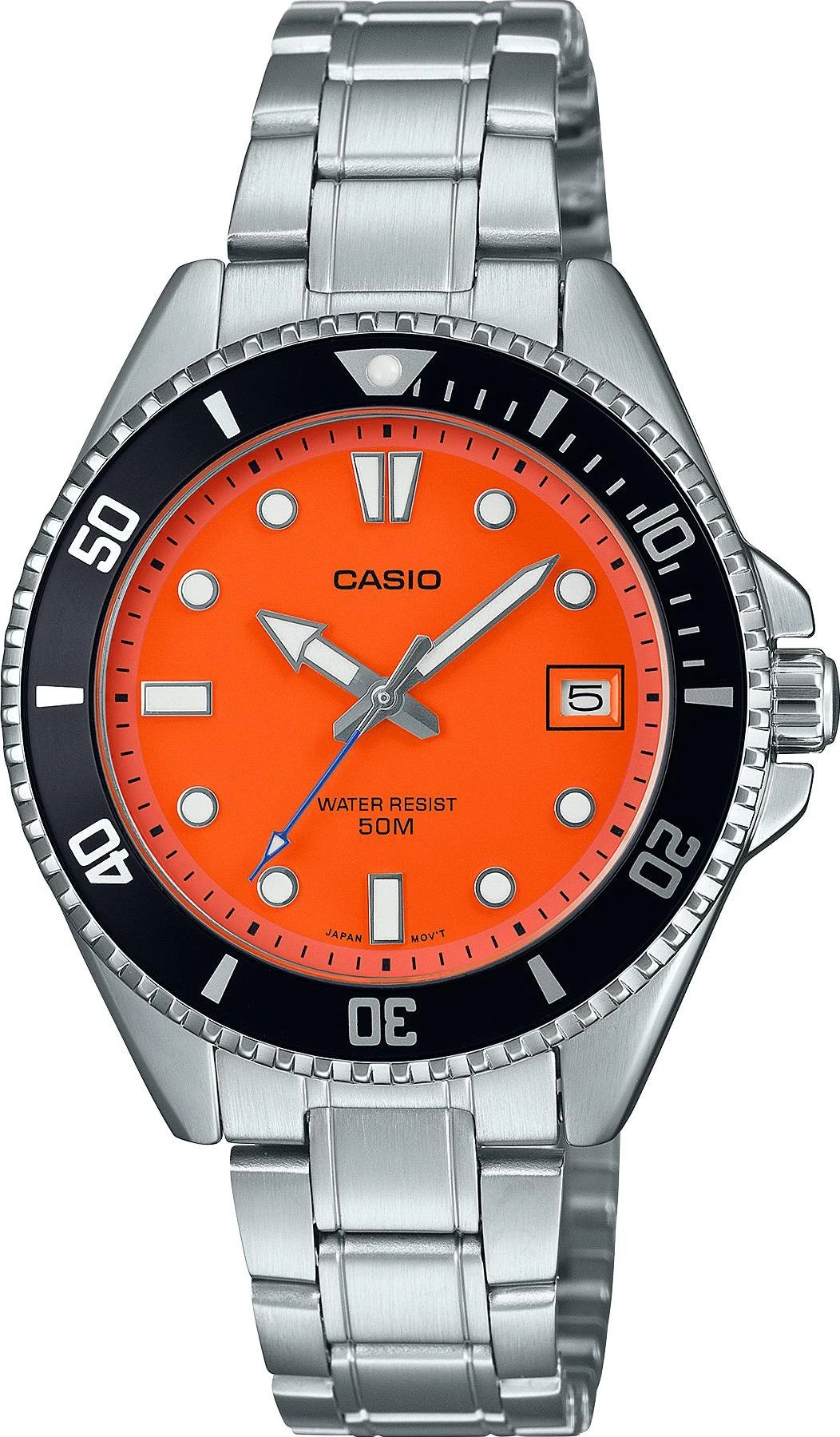 Мужские наручные часы Casio Collection MDV-10D-4A1. Точный кварцевый механизм с аналоговой индикацией. Браслет из нержавеющей стали. Браслет из нержавеющей стали. Прочное, устойчивое к царапинам минеральное стекло защищает часы от повреждений. На циферблате отображается текущее число месяца. Часы являются водонепроницаемыми до 5 Бар. Цвет циферблата: Черный. Цвет корпуса: Оранжевый. На стрелки и отметки нанесен светонакопительный состав, благодаря этому считывать информацию с циферблата возможно и в темноте. Высота (с ушками): 42 мм. Толщина: 10 мм. Гарантия: 2 года.