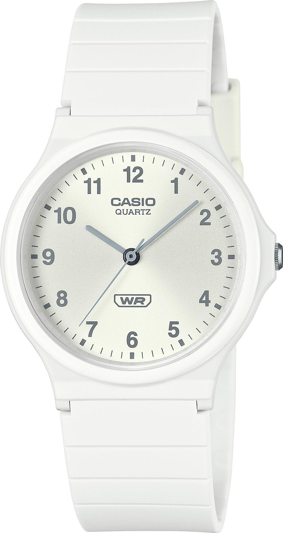 Унисекс наручные часы Casio Collection MQ-24B-7B. Точный кварцевый механизм с аналоговой индикацией. В отличие от механических часов, не требуют завода и работают от батареи, показывая отклонение всего несколько секунд в месяц. Полимерный ремешок. Натуральный полимерный материал является идеальным для изготовления ремешка благодаря своей чрезвычайной прочности и гибкости. Полимерный корпус надежно защищает часы от механических повреждений. Органическое стекло. Часы являются водонепроницаемыми до 3 Бар. Цвет циферблата: Белый. Высота (с ушками): 38.8 мм. Толщина: 7.8 мм. Гарантия: 2 года. Другие наименования модели: MQ-24B-7BEF.