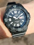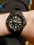 Неплохие игрушечные часики за эти деньги. Легкие, не огромные, не толстые. Ярко белый цвет на черном циферблате, оказалось, смотрится не очень. Можно было чуть добавить синего или зеленого оттенка. Заводная головка не закручивается. Люм очень слабенький, за это минус звезда. Брал в основном из-за дня недели.