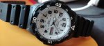 Наручные часы в спортивном стиле для мужчин. Доступная цена. Вращающийся безель. Корпус и стекло из прочного и долговечного полимерного материала. Водостойкость 100 метров. Кварцевый механизм с индикацией даты и дня недели.