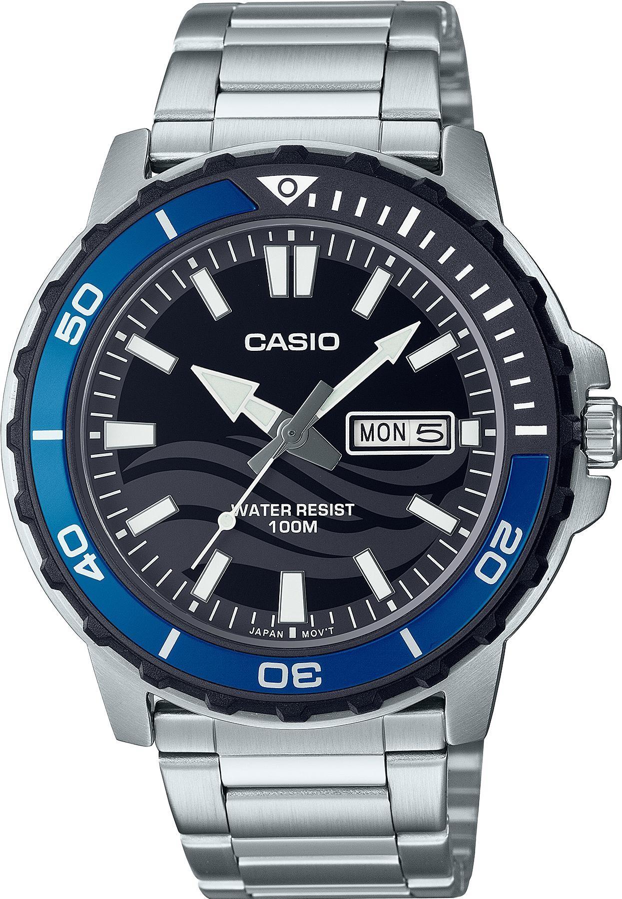Мужские наручные часы Casio Collection MTD-125D-1A2. Точный кварцевый механизм с аналоговой индикацией. Браслет из нержавеющей стали. Аккумулятор обеспечивает часы достаточным питанием приблизительно на 3 года. Браслет из нержавеющей стали. Прочное, устойчивое к царапинам минеральное стекло защищает часы от повреждений. На циферблате отображается текущее число месяца и день недели. Часы являются водонепроницаемыми до 10 Бар. Цвет циферблата: Серебристый. Цвет циферблата: Синий. Цвет циферблата: Черный. Цвет корпуса: Черный. На стрелки и отметки нанесен светонакопительный состав, благодаря этому считывать информацию с циферблата возможно и в темноте. Толщина: 10 мм. Гарантия: 2 года.