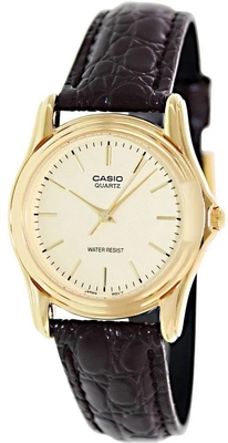 Мужские наручные часы в стальном корпусе круглой формы с позолотой. Секундная стрелка центральная, кожаный ремешок коричневого цвета.