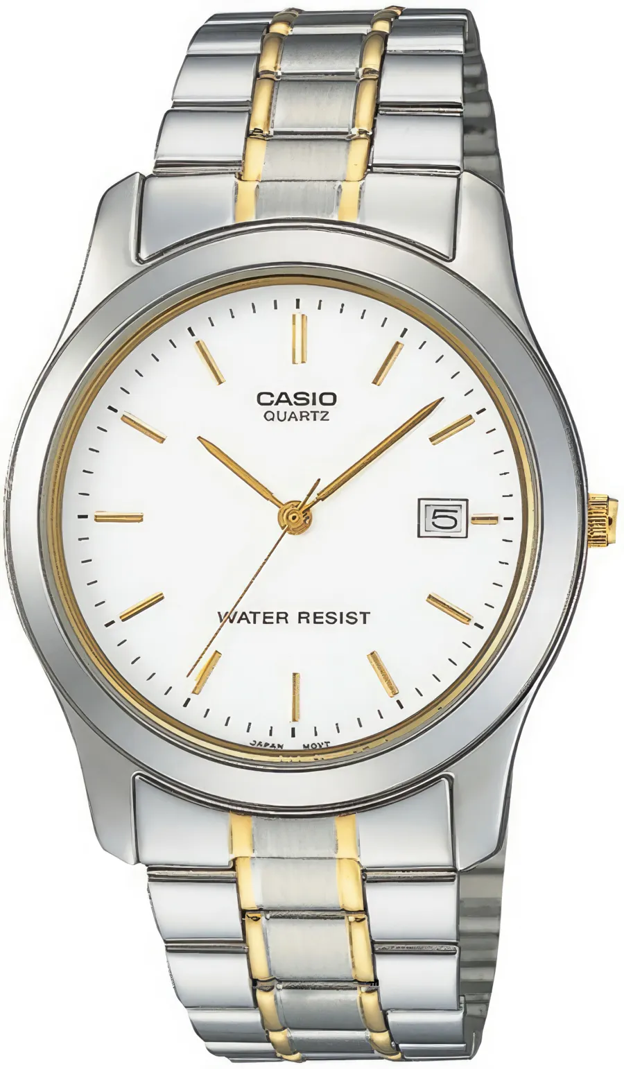 Мужские наручные часы с окошком даты и центральной секундной стрелкой в круглом стальном корпусе с PVD покрытием, на комбинированном браслете.