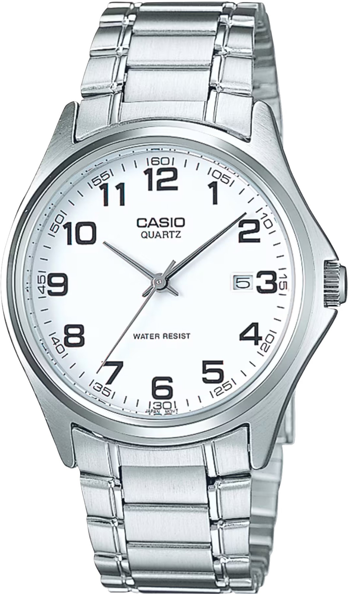 Мужские наручные часы с аналоговой индикацией. Корпус стальной полированный. Механизм кварцевый с центральной секундной стрелкой и индикатором даты.