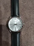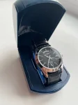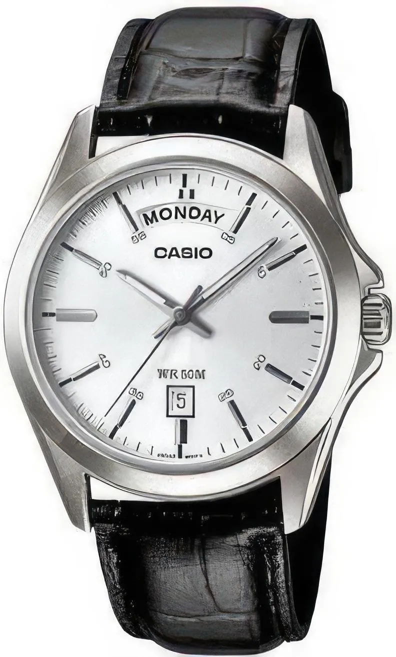 Мужские кварцевые часы с индикацией числа и дня недели на кожаном ремешке с удобной застежкой.