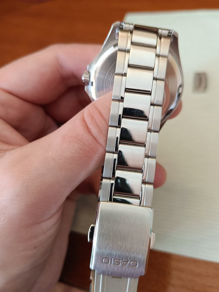 Очень понравилась модель часов , оригинал , гарантийный талон и инструкция в комплекте имеются, рекомендую. Звенья на браслете легко убираются в домашних условиях. Часы не тяжёлые , на руке сидят комфортно) в живую выглядят дорого богато)