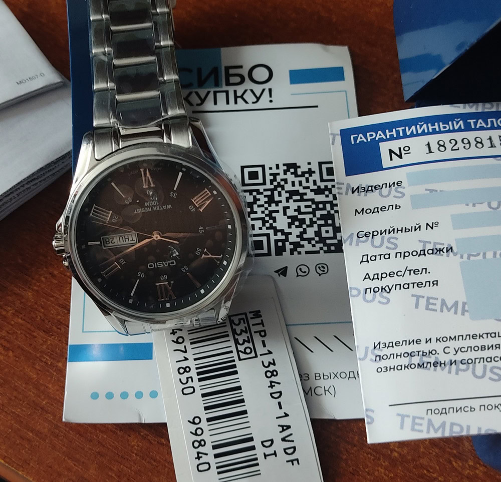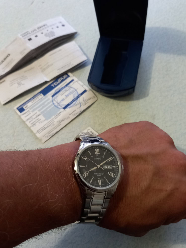 Долго сомневались, выбирали продавца, чтобы были все документы. И нашли) отличные часы, упаковано все очень хорошо, все документы в комплекте.