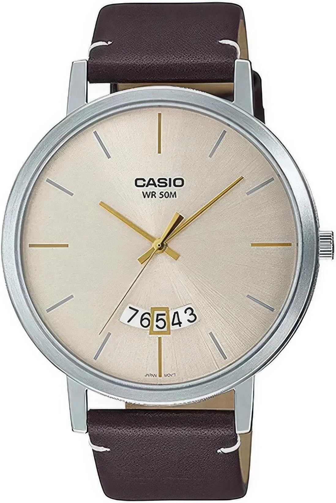 Мужские наручные часы Casio Collection MTP-B100L-9E. Точный кварцевый механизм с аналоговой индикацией. Корпус изготовлен из высококачественной нержавеющей стали 316L с высокими антикоррозийными свойствами. На циферблате отображается текущее число месяца. Ремешок изготовлен из кожи. Прочное, устойчивое к царапинам минеральное стекло защищает часы от повреждений. Часы являются водонепроницаемыми до 5 Бар. Цвет корпуса: Серебристый. Цвет циферблата: Бежевый. Гарантия: 2 года.