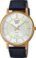 Мужские наручные часы Casio Collection MTP-B120GL-7A. Точный кварцевый механизм с аналоговой индикацией. Ремешок изготовлен из кожи. Аккумулятор обеспечивает часы достаточным питанием приблизительно на 3 года. Браслет из нержавеющей стали. Прочное, устойчивое к царапинам минеральное стекло защищает часы от повреждений. На циферблате отображается текущее число месяца и день недели. Часы являются водонепроницаемыми до 5 Бар. Цвет циферблата: Желтое золото. Цвет корпуса: Серебристый. Высота (с ушками): 48 мм. Толщина: 8 мм. Гарантия: 2 года.
