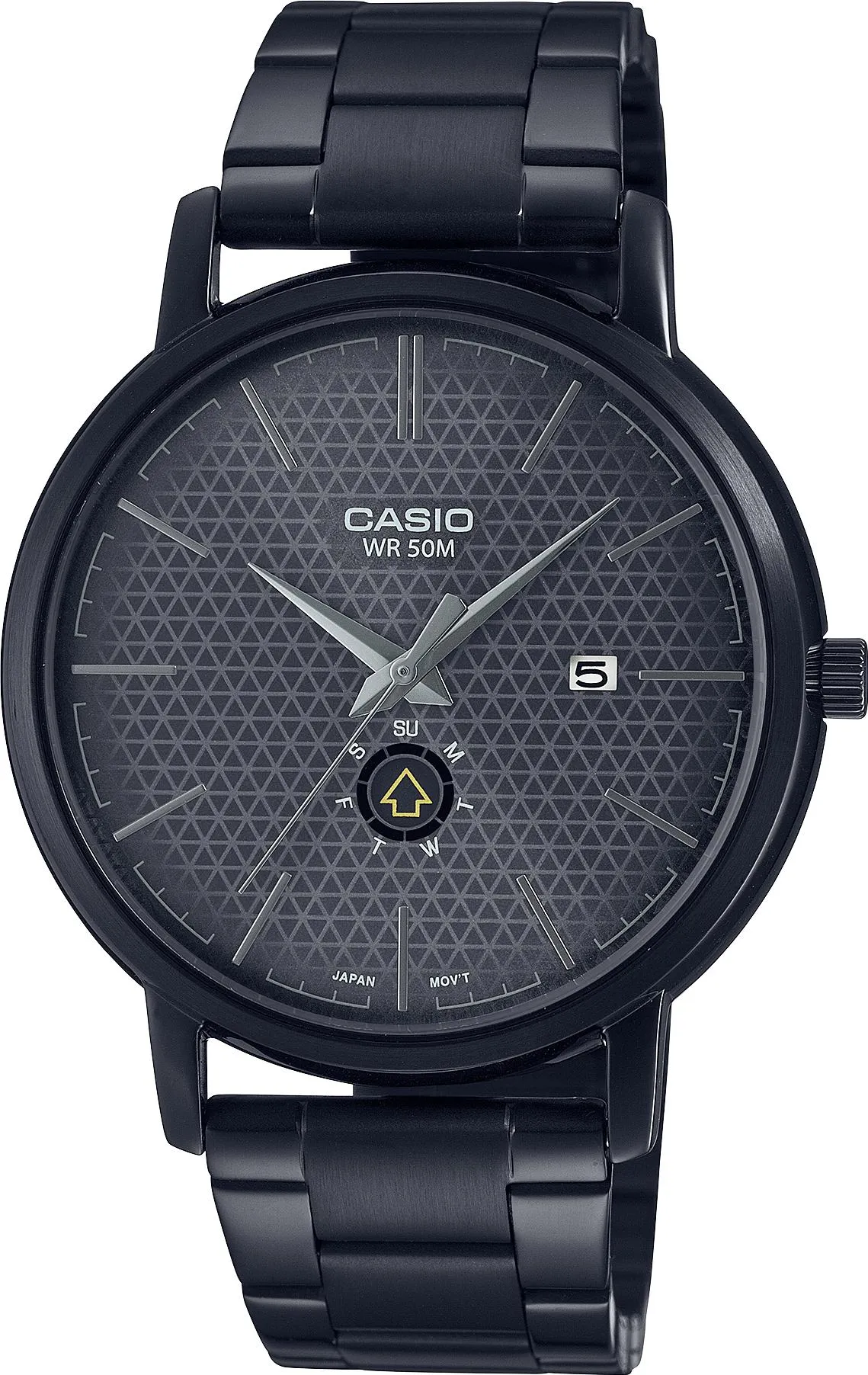 Мужские наручные часы Casio Collection MTP-B125B-8A. Точный кварцевый механизм с аналоговой индикацией. Браслет из нержавеющей стали. Аккумулятор обеспечивает часы достаточным питанием приблизительно на 3 года. Браслет из нержавеющей стали. Прочное, устойчивое к царапинам минеральное стекло защищает часы от повреждений. На циферблате отображается текущее число месяца и день недели. Часы являются водонепроницаемыми до 5 Бар. Цвет циферблата: Черный. Цвет корпуса: Черный. Толщина: 8 мм. Гарантия: 2 года.