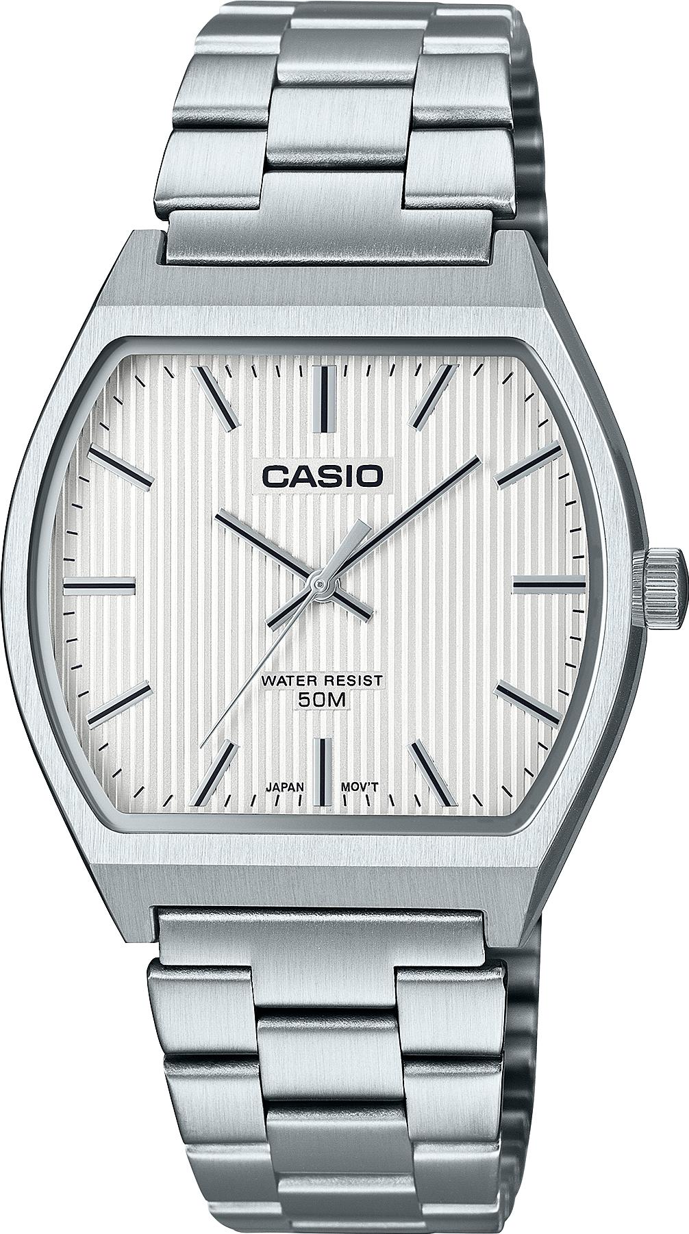 Мужские наручные часы Casio Collection MTP-B140D-7A. Точный кварцевый механизм с аналоговой индикацией. Браслет из нержавеющей стали. Аккумулятор обеспечивает часы достаточным питанием приблизительно на 3 года. Браслет из нержавеющей стали. Прочное, устойчивое к царапинам минеральное стекло защищает часы от повреждений. Часы являются водонепроницаемыми до 5 Бар. Цвет циферблата: Серебристый. Цвет корпуса: Белый. Толщина: 8 мм. Гарантия: 2 года.