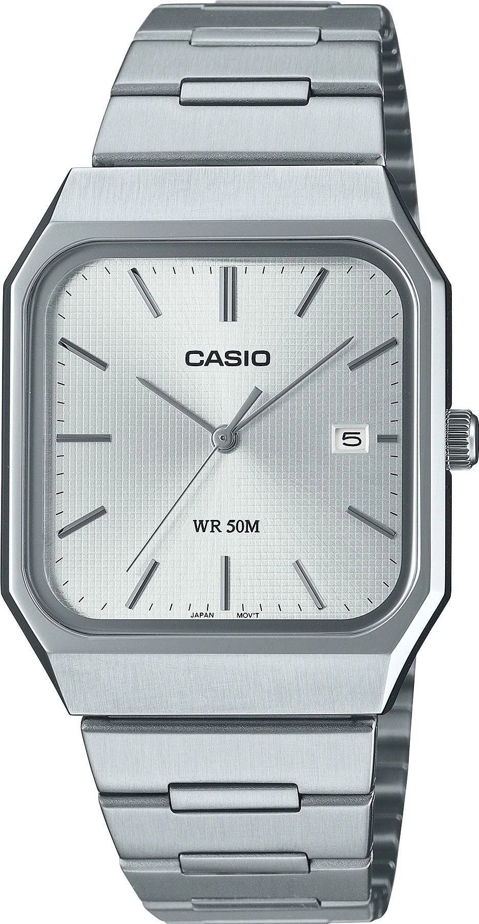 Часы с японским кварцевым механизмом оснащены центральными часовой, минутной и секундной стрелками, а также окошком даты. Точность хода составляет от -10 до +20 секунд в месяц. Минеральное стекло устойчиво к царапинам, а корпус из нержавеющей стали 316L обладает высокими антикоррозийными свойствами. Водонепроницаемость до 5 атмосфер (50 метров) позволяет не снимать часы во время плавания. Регулируемый браслет из нержавеющей стали дополнен надежным замком с тройным сгибом.