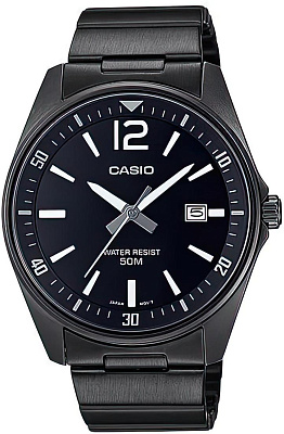 Мужские наручные часы Casio Collection MTP-E170B-1B. Точный кварцевый механизм с аналоговой индикацией. Корпус изготовлен из высококачественной нержавеющей стали 316L с высокими антикоррозийными свойствами. На стрелки и отметки нанесен светонакопительный состав, благодаря этому считывать информацию с циферблата возможно и в темноте. На циферблате отображается текущее число месяца. Браслет из нержавеющей стали. Прочное, устойчивое к царапинам минеральное стекло защищает часы от повреждений. Часы являются водонепроницаемыми до 5 Бар. Цвет циферблата: Черный. Ширина (с заводной головкой): 48мм. Толщина: 8мм. Гарантия: 2 года.