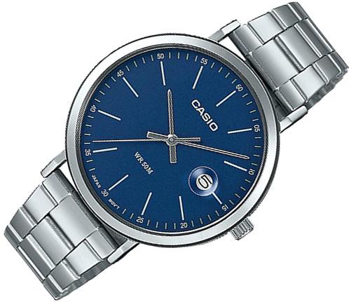 Мужские наручные часы Casio Collection MTP-E175D-2E. Точный кварцевый механизм с аналоговой индикацией. Корпус изготовлен из высококачественной нержавеющей стали 316L с высокими антикоррозийными свойствами. На циферблате отображается текущее число месяца. Аккумулятор обеспечивает часы достаточным питанием приблизительно на 3 года. После настройки автоматический календарь всегда отображает точную дату. Браслет из нержавеющей стали. Прочное, устойчивое к царапинам минеральное стекло защищает часы от повреждений. Часы являются водонепроницаемыми до 5 Бар. Цвет корпуса: Серебристый. Цвет циферблата: Синий. Гарантия: 2 года.