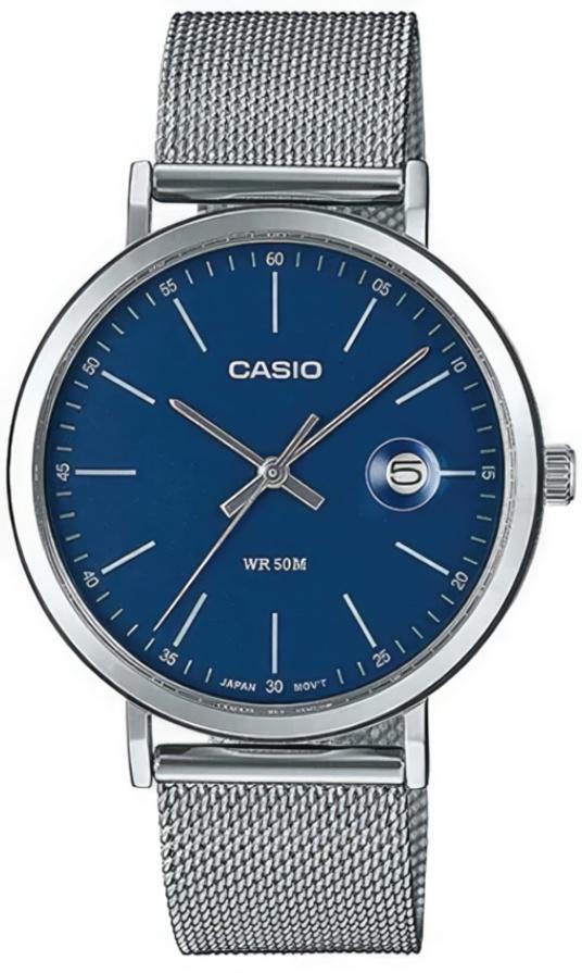 Мужские наручные часы Casio Collection MTP-E175M-2E. Точный кварцевый механизм с аналоговой индикацией. Корпус изготовлен из высококачественной нержавеющей стали 316L с высокими антикоррозийными свойствами. На циферблате отображается текущее число месяца. Аккумулятор обеспечивает часы достаточным питанием приблизительно на 3 года. После настройки автоматический календарь всегда отображает точную дату. Браслет из нержавеющей стали. Прочное, устойчивое к царапинам минеральное стекло защищает часы от повреждений. Часы являются водонепроницаемыми до 5 Бар. Цвет корпуса: Серебристый. Цвет циферблата: Синий. Гарантия: 2 года.