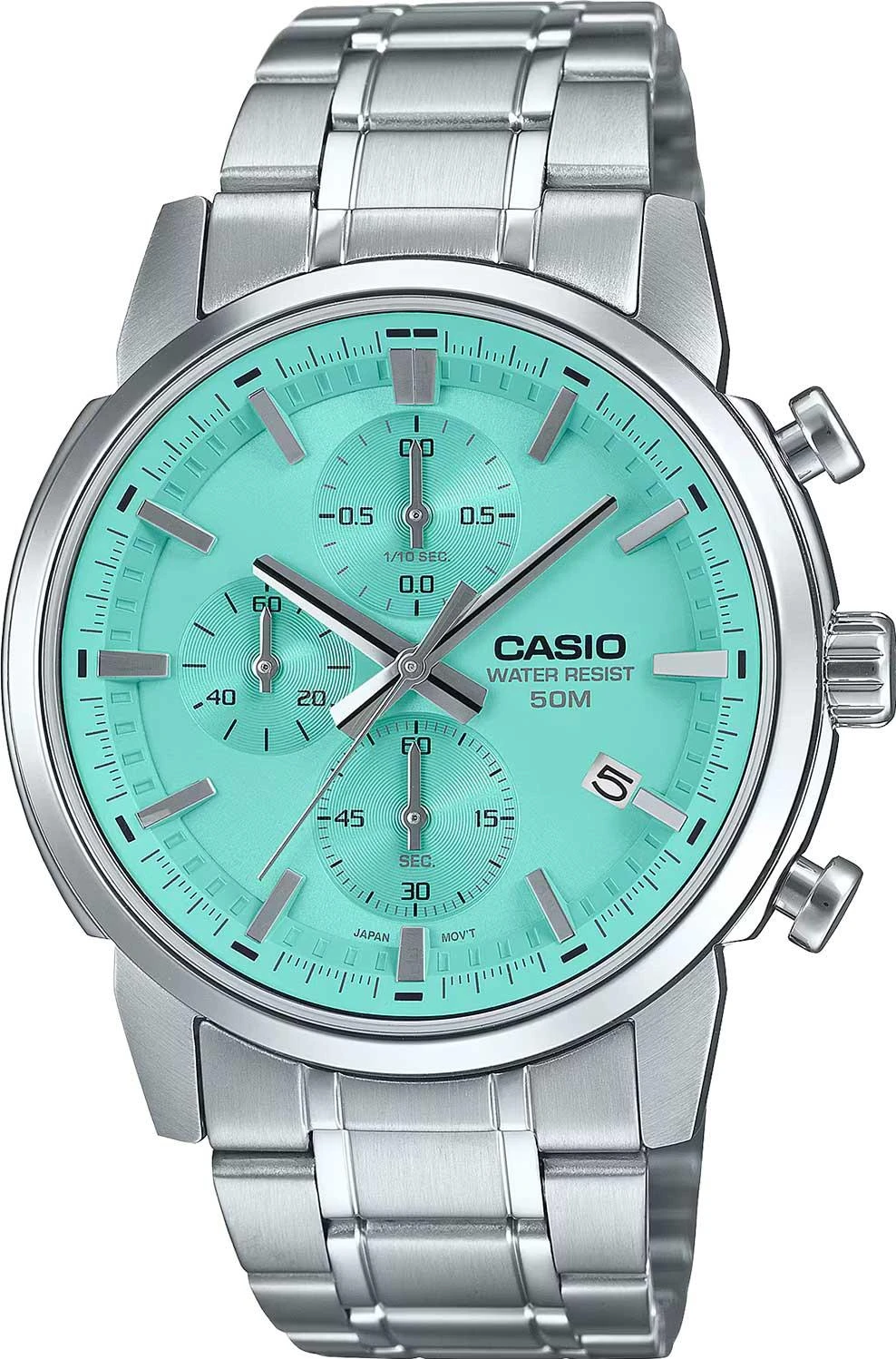 Часы-хронограф с секундомером, обеспечивающим точность показаний до 1/10 секунды и время измерения до 1 часа, оснащены циферблатом с метками в виде штрихов и окошком даты в положении 4 часа. Задняя крышка с винтовым фиксатором гарантирует надежность, а батарейки хватает на 3 года работы. Часы дополнены браслетом с удобной тройной раскладывающейся застежкой, которая расстегивается одним касанием.