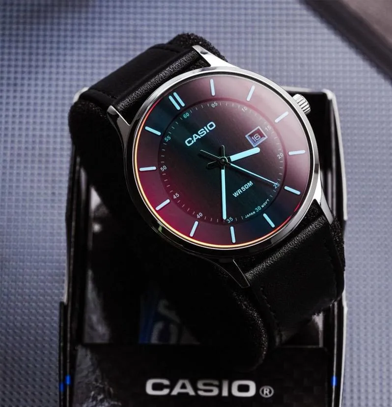 Мужские наручные часы Casio Collection MTP-E605L-1E. Точный кварцевый механизм с аналоговой индикацией. Ремешок изготовлен из кожи. Аккумулятор обеспечивает часы достаточным питанием приблизительно на 3 года. Браслет из нержавеющей стали. Прочное, устойчивое к царапинам минеральное стекло защищает часы от повреждений. На циферблате отображается текущее число месяца. Часы являются водонепроницаемыми до 5 Бар. Цвет циферблата: Серебристый. Цвет корпуса: Красный. Цвет корпуса: Черный. На стрелки и отметки нанесен светонакопительный состав, благодаря этому считывать информацию с циферблата возможно и в темноте. Толщина: 9 мм. Гарантия: 2 года.