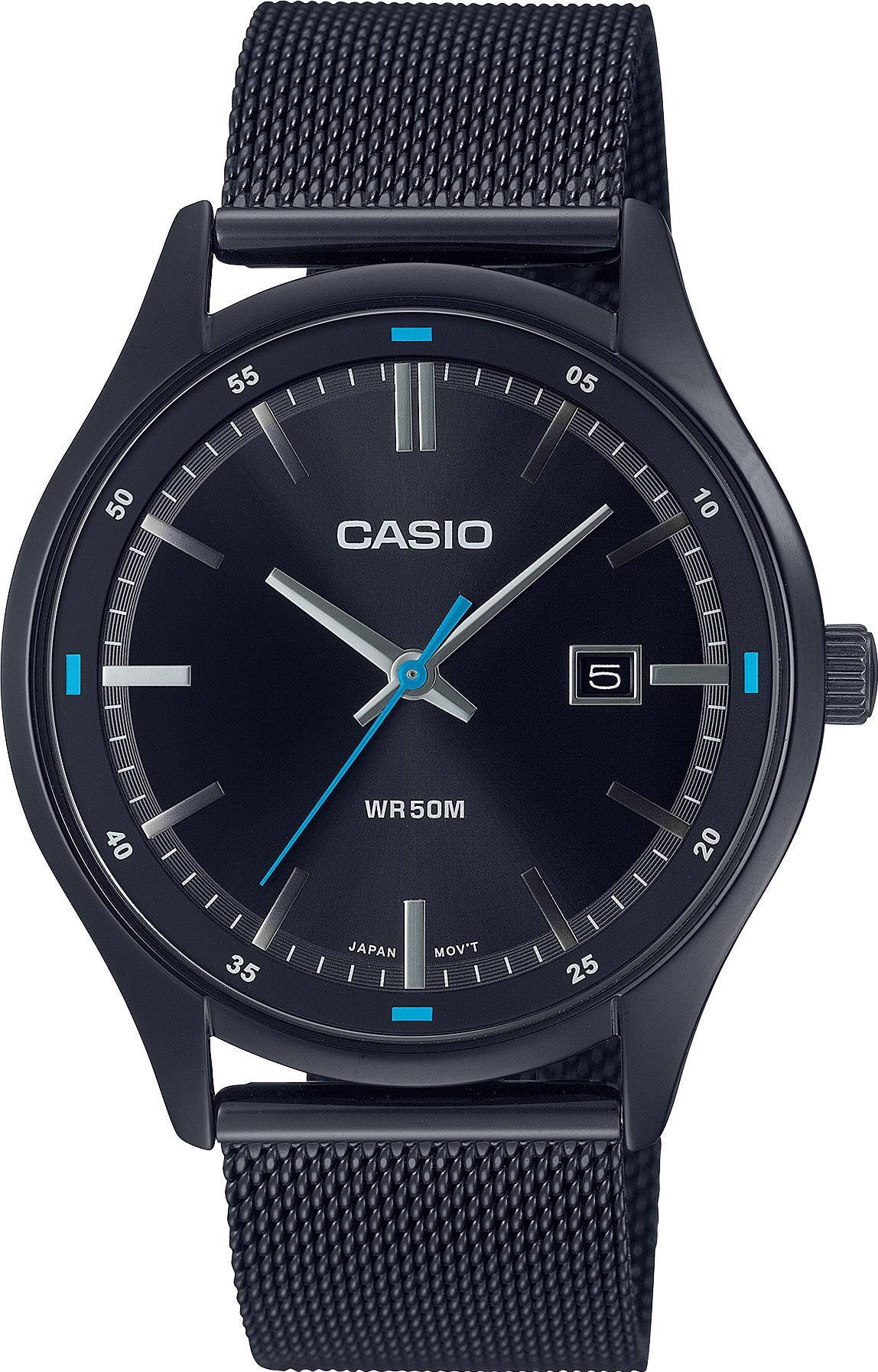 Мужские наручные часы Casio Collection MTP-E710MB-1A. Точный кварцевый механизм с аналоговой индикацией. Браслет из нержавеющей стали. Аккумулятор обеспечивает часы достаточным питанием приблизительно на 3 года. Браслет из нержавеющей стали. Прочное, устойчивое к царапинам минеральное стекло защищает часы от повреждений. На циферблате отображается текущее число месяца. Часы являются водонепроницаемыми до 5 Бар. Цвет циферблата: Черный. Цвет корпуса: Черный. Толщина: 8 мм. Гарантия: 2 года.