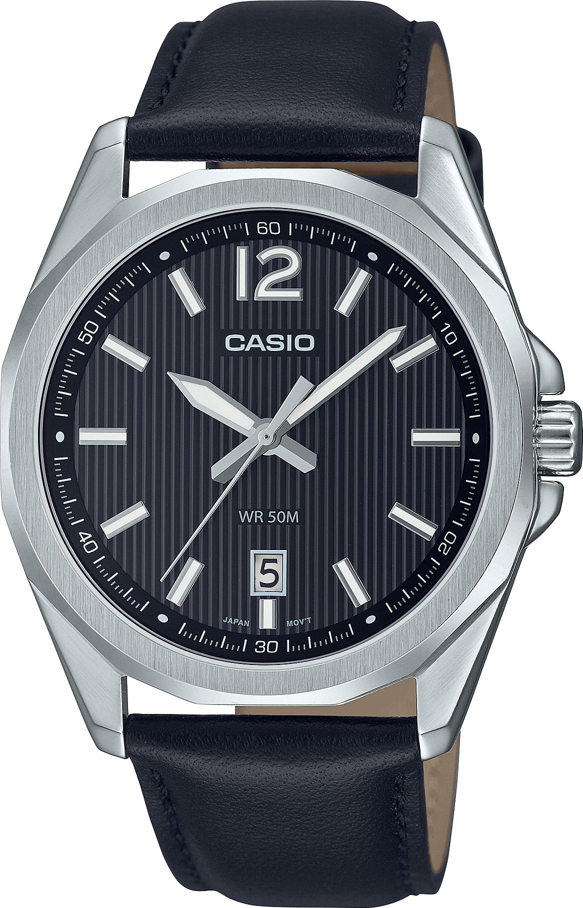 Мужские наручные часы Casio Collection MTP-E725L-1A. Точный кварцевый механизм с аналоговой индикацией. Ремешок изготовлен из кожи. Аккумулятор обеспечивает часы достаточным питанием приблизительно на 3 года. Браслет из нержавеющей стали. Прочное, устойчивое к царапинам минеральное стекло защищает часы от повреждений. На циферблате отображается текущее число месяца. Часы являются водонепроницаемыми до 5 Бар. Цвет циферблата: Серебристый. Цвет корпуса: Черный. На стрелки и отметки нанесен светонакопительный состав, благодаря этому считывать информацию с циферблата возможно и в темноте. Толщина: 9 мм. Гарантия: 2 года.
