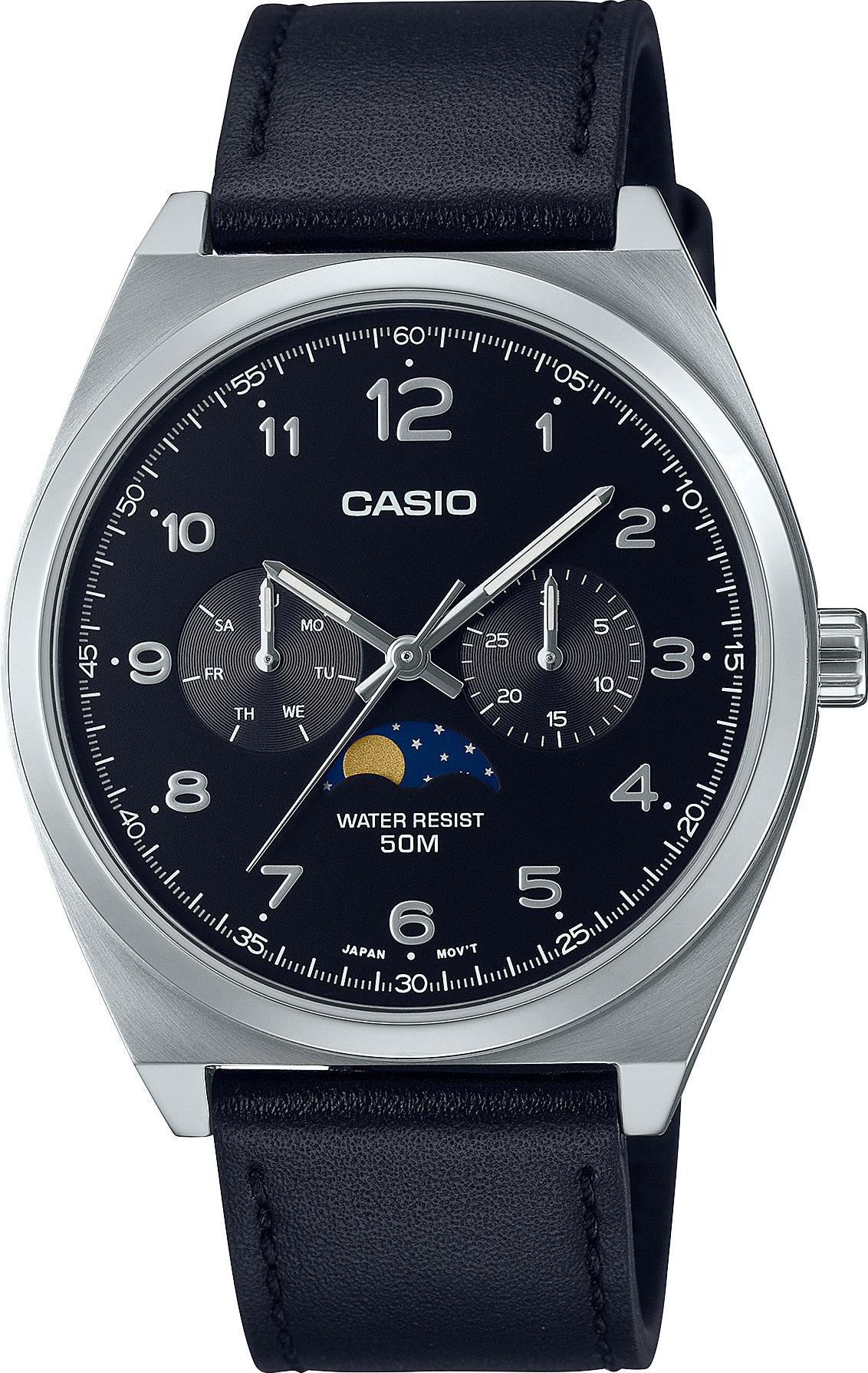 Мужские наручные часы Casio Collection MTP-M300L-1A. Точный кварцевый механизм с аналоговой индикацией. Ремешок изготовлен из кожи. Аккумулятор обеспечивает часы достаточным питанием приблизительно на 3 года. Браслет из нержавеющей стали. Прочное, устойчивое к царапинам минеральное стекло защищает часы от повреждений. На циферблате отображается текущее число месяца и день недели. Часы являются водонепроницаемыми до 5 Бар. Цвет циферблата: Серебристый. Цвет корпуса: Черный. На стрелки и отметки нанесен светонакопительный состав, благодаря этому считывать информацию с циферблата возможно и в темноте. Толщина: 9 мм. Гарантия: 2 года.