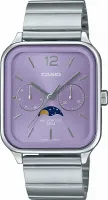 Мужские наручные часы Casio Collection MTP-M305D-6A. Точный кварцевый механизм с аналоговой индикацией. Браслет из нержавеющей стали. Отображение фаз Луны. Часы определяют возраст Луны в текущий момент для текущего местоположения. Браслет из нержавеющей стали. Прочное, устойчивое к царапинам минеральное стекло защищает часы от повреждений. На циферблате отображается текущее число месяца и день недели. Часы являются водонепроницаемыми до 5 Бар. Цвет циферблата: Серебристый. Цвет корпуса: Фиолетовый. Высота (с ушками): 45 мм. Толщина: 9 мм. Гарантия: 2 года.