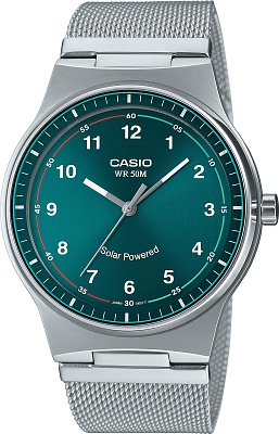 Мужские наручные часы Casio Collection MTP-RS105M-3B. Точный кварцевый механизм с аналоговой индикацией. Браслет из нержавеющей стали. Солнечная батарейка. Солнечная подзаряжающаяся батарейка обеспечивает питание часов для работы. Браслет из нержавеющей стали. Прочное, устойчивое к царапинам минеральное стекло защищает часы от повреждений. Часы являются водонепроницаемыми до 5 Бар. Цвет циферблата: Серебристый. Цвет корпуса: Зеленый. На стрелки и отметки нанесен светонакопительный состав, благодаря этому считывать информацию с циферблата возможно и в темноте. Толщина: 9 мм. Гарантия: 2 года.