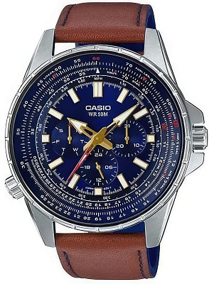 Точный кварцевый механизм. Центральная секундная стрелка. • Точность хода не хуже от -10 до +20 сек. в месяц. • Стрелочный указатель даты. • Стрелочный указатель дня недели. • Стрелочный указатель времени суток с 24-х часовой шкалой. • Минеральное стекло устойчивое к возникновению царапин. • Светонакопительный состав на стрелках и маркерах часа. • Корпус из высококачественного стального сплава 316L с высокими антикоррозийными свойствами. • Водозащита до 5 АТМ. • Кожаный ремешок. • Простая ремешковая застежка.